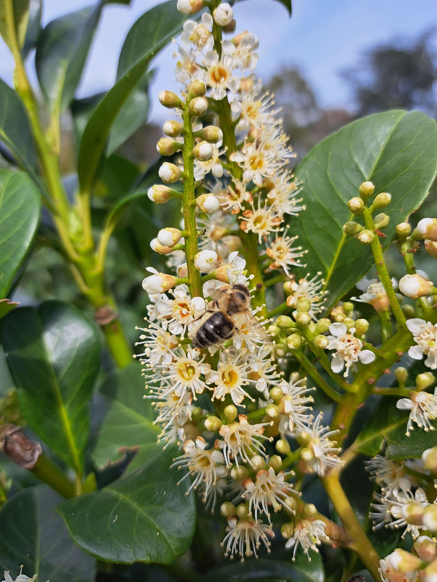 Der Kirschlorbeer hat im ökologischen Bereich etwas hinzuzufügen. Die auffälligen und stark duftenden Blüten sind eine Nahrungsquelle für viele Arten von Insekten. Im Gegensatz zu dem, was oft behauptet wird, werden die Beeren des Kirschlorbeers von Vögeln gefressen (zumindest von Amseln, das habe ich oft mit eigenen Augen gesehen). Und die dichten Sträucher bieten im Winter Schutz für Vögel und werden im Frühjahr und Sommer häufig als Nisthäuser genutzt. Außerdem benötigt die Lorbeerkirsche, wenn sie einmal angewachsen ist, sehr wenig Wasser. Insofern geht es ihnen in einem immer trockener werdenden Klima gut.