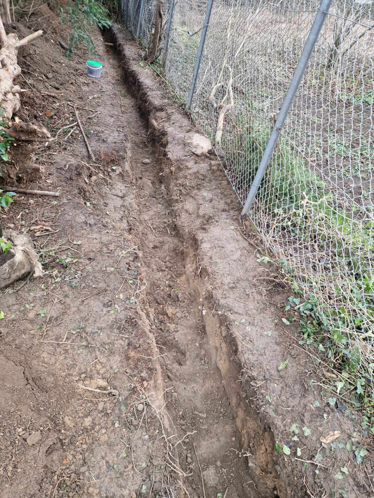 Liguster vulgare Atrovirens 115-130 cm geliefert nach Lippstadt. Der Pflanzgraben war schon fertig: